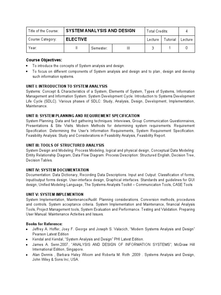 Title of the Course: SYSTEM ANALYSIS AND DESIGN Total Credits: 4