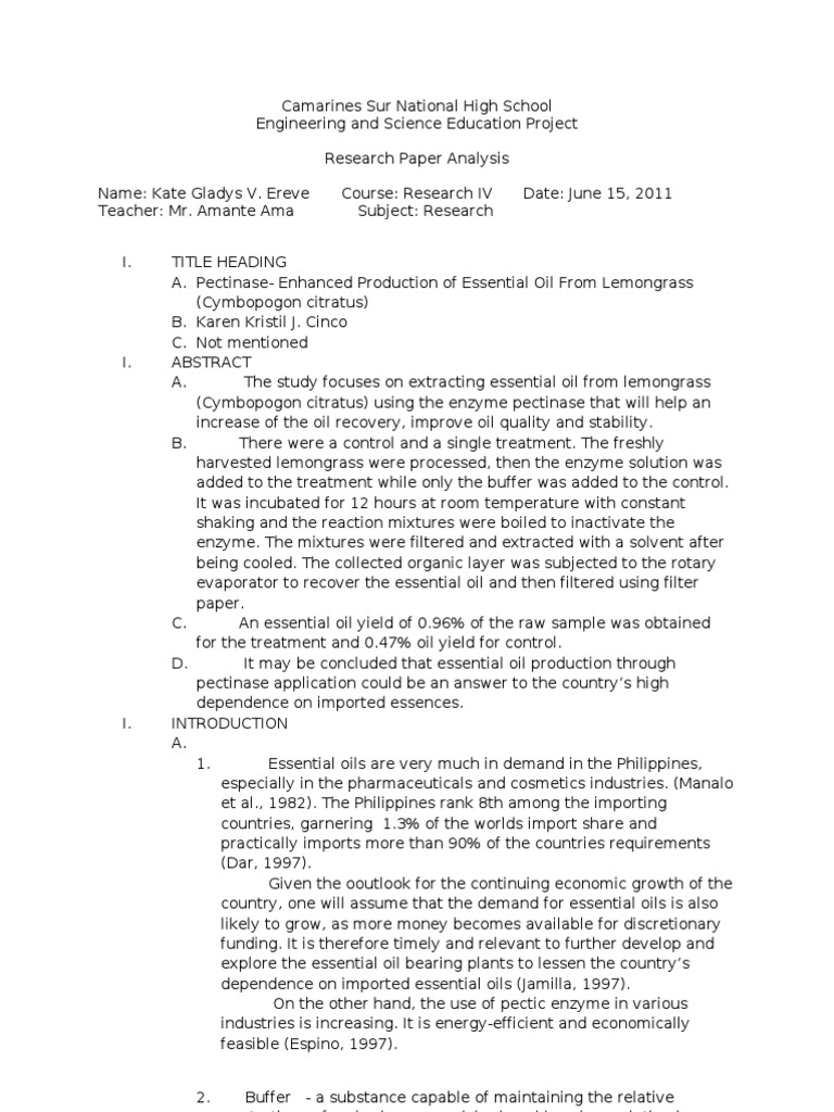 Camarines Sur National High School Engineering and Science Education Project Research Paper Analysis Name: Kate