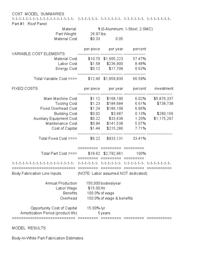 -------------------------------------------------- ----------------- ----------------- ----------------- -------------------Total B-I-W Material Cost
