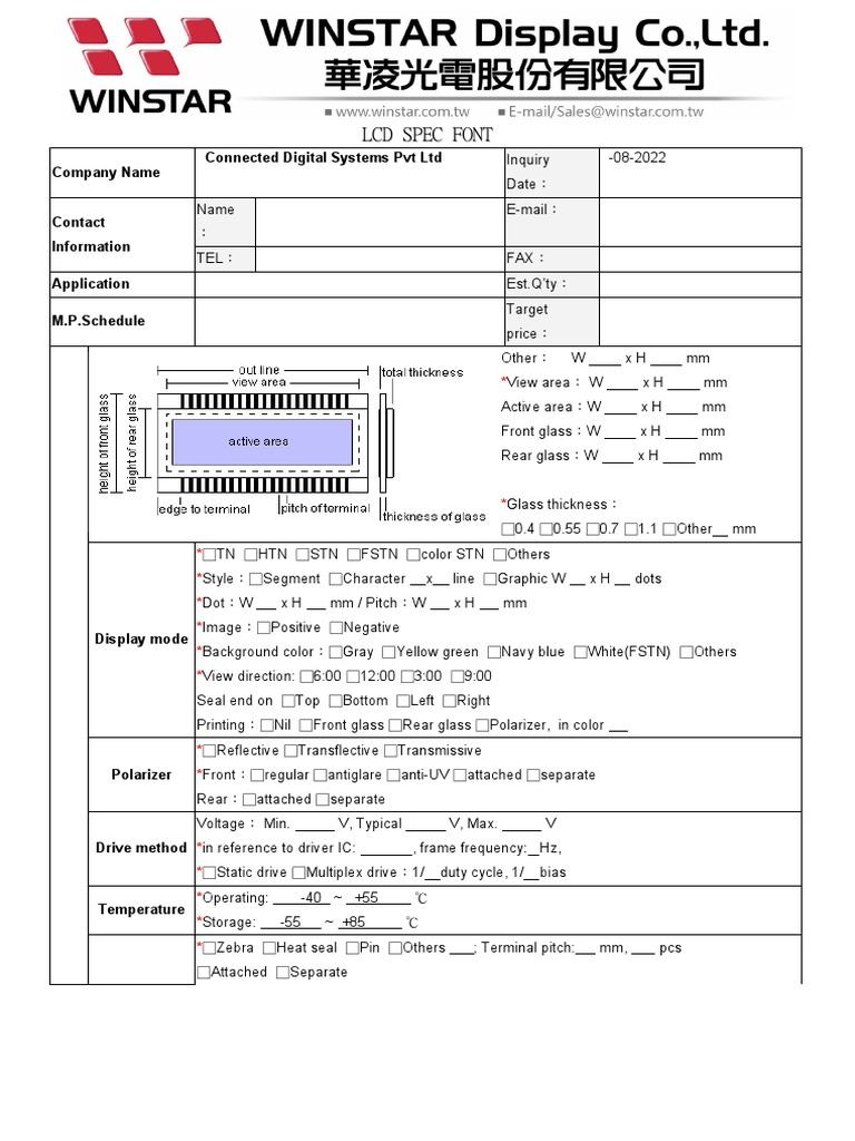 *Background color:□Gray □Yellow green □Navy blue □White(FSTN) □Others