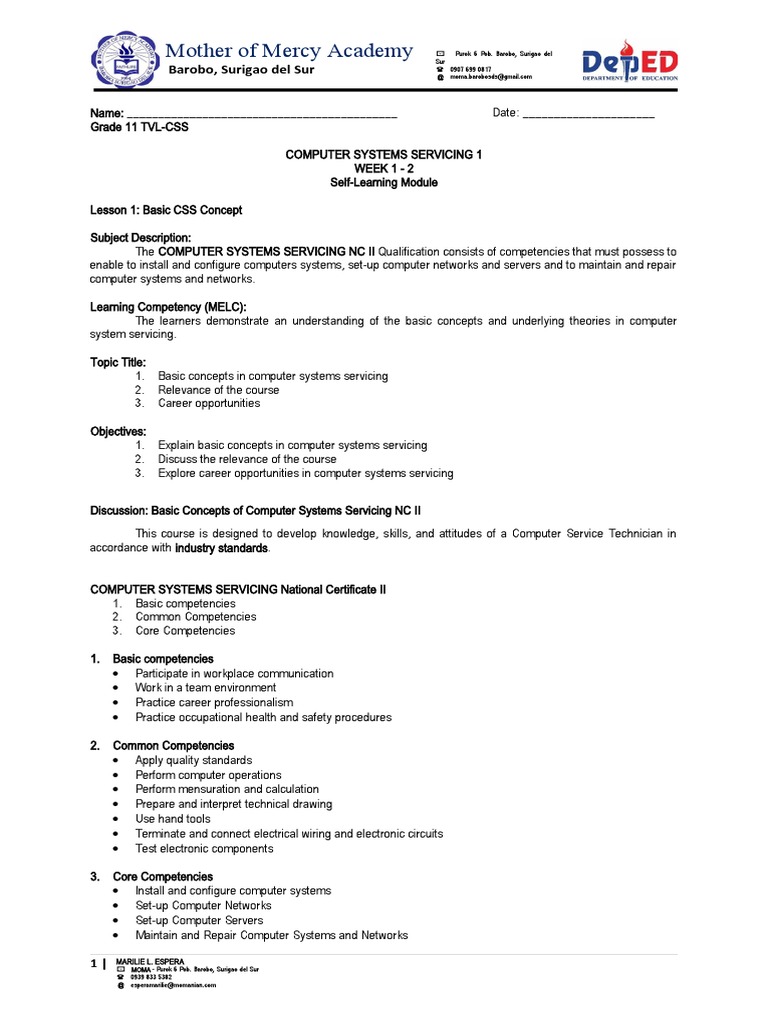 The Computer Systems Servicing National Certificate Level II (NC II) Qualification consists of competencies
