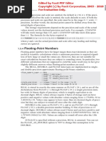 FIXED DECIMAL Data Format Packed Decimal Type of Data Coded Arithmetic Default Precision 5 decimal digits Max. Precision 15 decimal digits Examples DECLARE EXAMPLE_1 FIXED DEC(7); DECLARE EXAMPLE_2 FIXED DEC(9,2) INIT (24.00); DECLARE EXAMPLE_3 FIXED DEC; FIXED BINARY Data format Fixed-point Type of Data Coded arithmetic Default Precision 15bits(32,767 in decimal) Max. Precision 31bits(2,147,483,647 in decimal) Examples DCL EXAMPLE_1 FIXED BIN(15); DCL EXAMPLE_2 FIXED BIN(31) INIT(2147483647); DCL EXAMPLE_3 FIXED BIN(31,6); FLOAT DECIMAL Data Format Type of Data Default Precision Max Precision Range of Exponent Examples DCL EX_1 DCL EX_2 DCL EX_3 DCL EX_4 DCL EX_5 FLOAT BINARY Data Format Type of Data Default Precision Max Precision Range of Exponent Examples DCL EX_1 DCL EX_2 DCL EX_3 DCL EX_4 DCL EX_5 BIT Data Format Type of Data Default length Maximum Length Floating-point Coded arithmetic 6 decimal digits 16 decimal digits -76 +75 10 to 10 FLOAT DEC(6); DEC(6); FLOAT(6); FLOAT DEC(16) INIT(6E+12); FLOAT DEC INIT(5280); Floating-point Coded arithmetic 21 bits(1,048,576 in decimal) 53 bits -260 +252 2 to 2 FLOAT BIN(6); BIN(6); FLOAT(6); FLOAT BIN(16) INIT(6E+12); FLOAT BIN INIT(5280); Bit Logical none 8000 bits for constants 32767 bits for variables