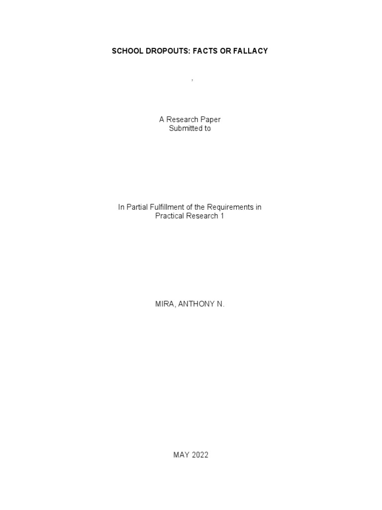 SCHOOL DROPOUTS: FACTS OR FALLACY