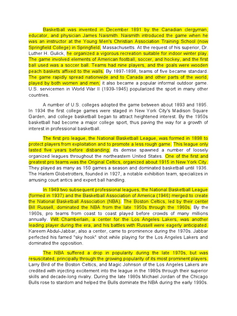 made up some new rules,” Naismith recalled. The physical education instructor sat