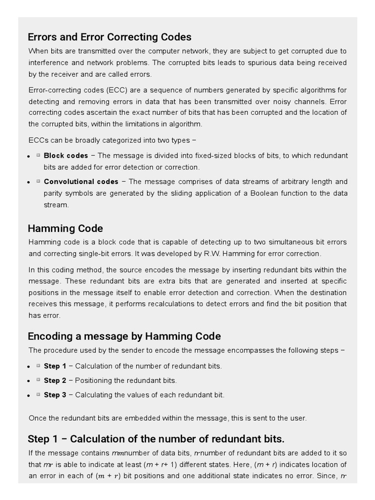 message. These redundant bits are extra bits that are generated and inserted at specific