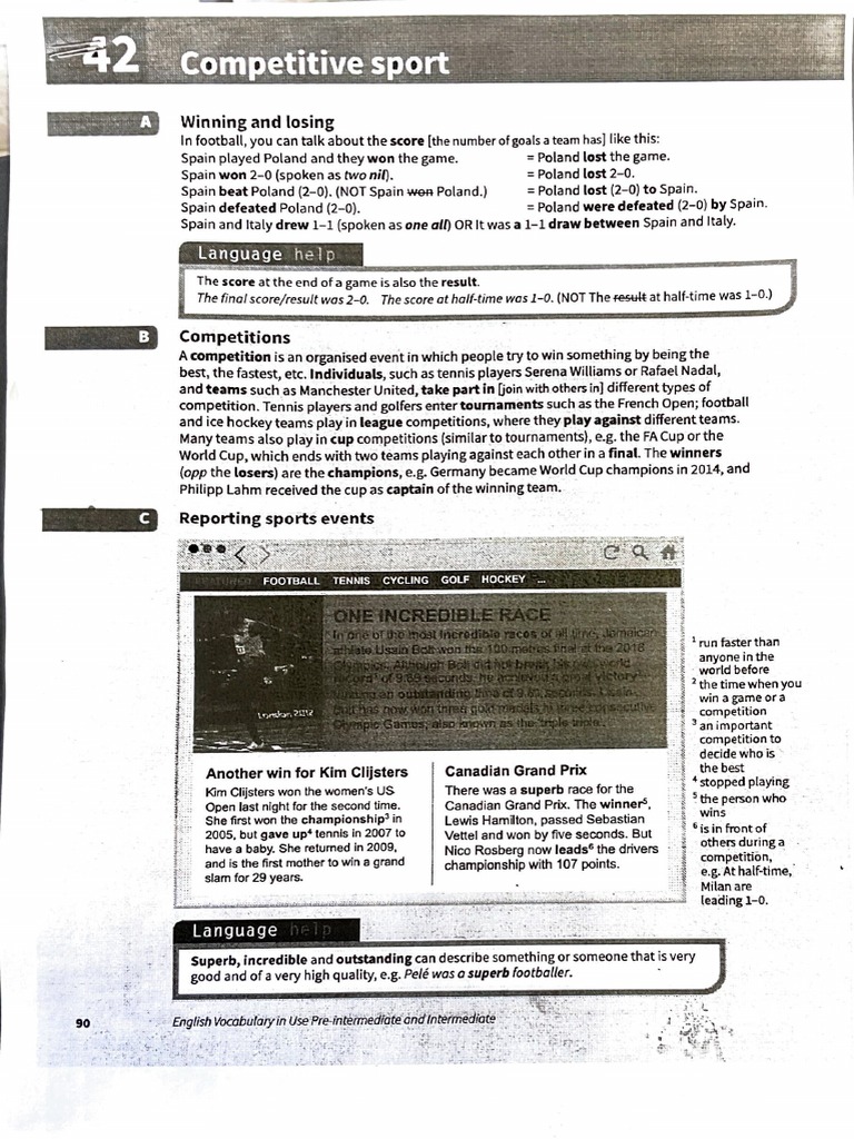 competition. Tennis players and golfers entertoumaments such as the French Open; football
