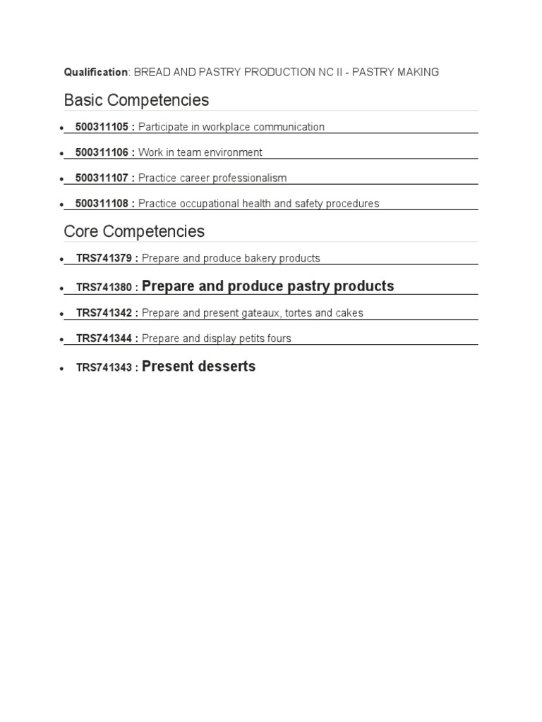 Qualification: BREAD AND PASTRY PRODUCTION NC II - PASTRY MAKING