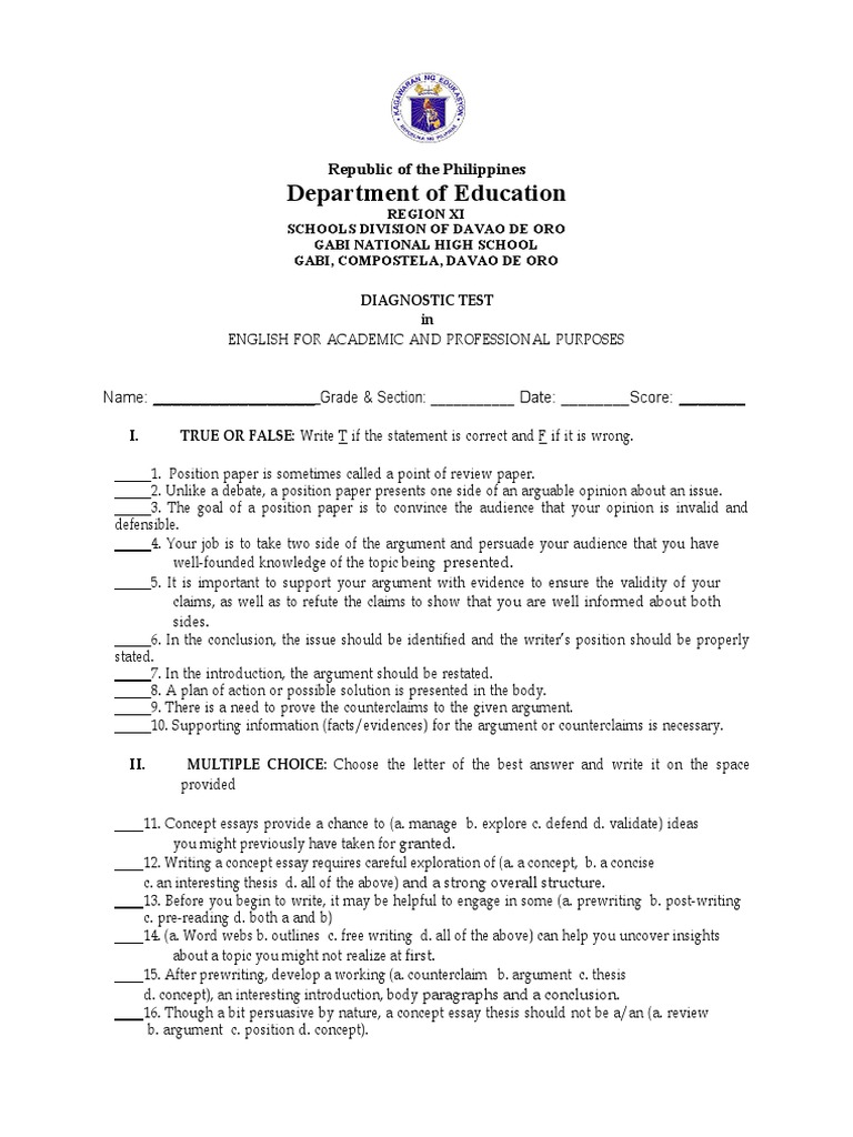 16. Though a bit persuasive by nature, a concept essay thesis should not be a/an (a. review