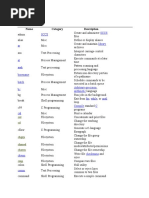 Shell programming alias basename dirname echo expr false printf test true unset Networking inetd host ifconfig netstat nslookup ping rlogin netcat traceroute Searching find grep locate whereis which Miscellaneous apropos banner bc cal clear date dd file help history info lp lpr man pax size tee tput type uname whatis yes