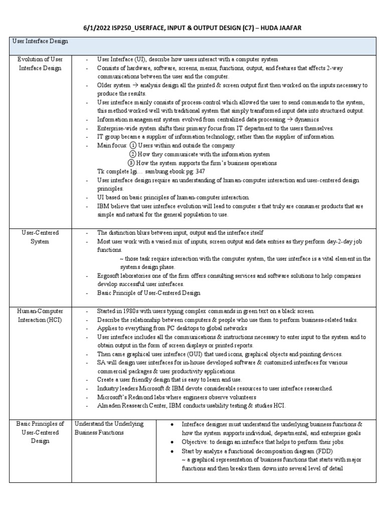 6/1/2022 ISP250_USERFACE, INPUT & OUTPUT DESIGN (C7) – HUDA JAAFAR