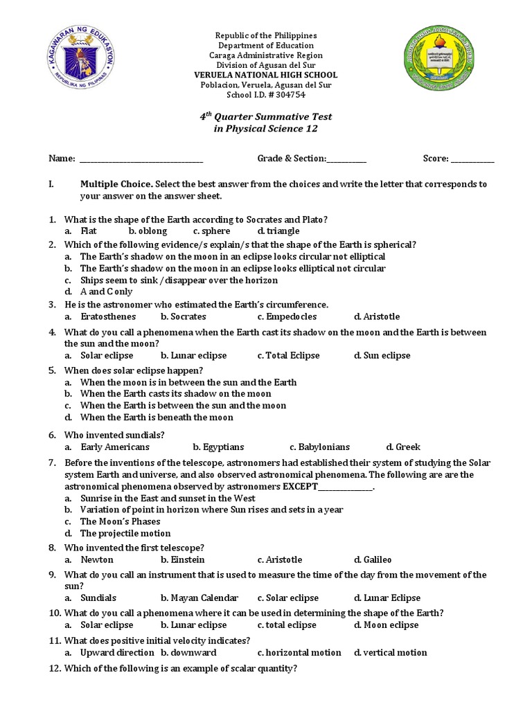 4th Quarter Summative Test