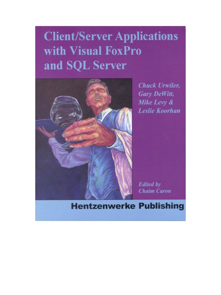 Published by: Hentzenwerke Publishing 980 East Circle Drive Whitefish Bay WI 53217 USA Hentzenwerke Publishing books are available through booksellers and directly from the publisher. Contact Hentzenwerke Publishing at: 414.332.9876 414.332.9463 (fax) www.hentzenwerke.com books@hentzenwerke.com Client/Server Applications with Visual FoxPro and SQL Server By Chuck Urwiler, Gary DeWitt, Mike Levy and Leslie Koorhan Technical Editor: Chaim Caron Copy Editor: Farion Grove Copyright 2000 by Chuck Urwiler, Gary DeWitt, Mike Levy and Leslie Koorhan All other products and services identified throughout this book are trademarks or registered trademarks of their respective companies. They are used throughout this book in editorial fashion only and for the benefit of such companies. No such uses, or the use of any trade name, is intended to convey endorsement or other affiliation with this book. All rights reserved. No part of this book, or the .CHM Help files available by download from Hentzenwerke Publishing, may be reproduced or transmitted in any form or by any means, electronic, mechanical photocopying, recording, or otherwise, without the prior written permission of the publisher, except that program listings and sample code files may be entered, stored and executed in a computer system. The information and material contained in this book are provided as is, without warranty of any kind, express or implied, including without limitation any warranty concerning the accuracy, adequacy, or completeness of such information or material or the results to be obtained from using such information or material. Neither Hentzenwerke Publishing nor the authors or editors shall be responsible for any claims attributable to errors, omissions, or other inaccuracies in the information or material contained in this book. In no event shall Hentzenwerke Publishing or the authors or editors be liable for direct, indirect, special, incidental, or consequential damages arising out of the use of such information or material. ISBN: 0-930919-01-8 Manufactured in the United States of America.