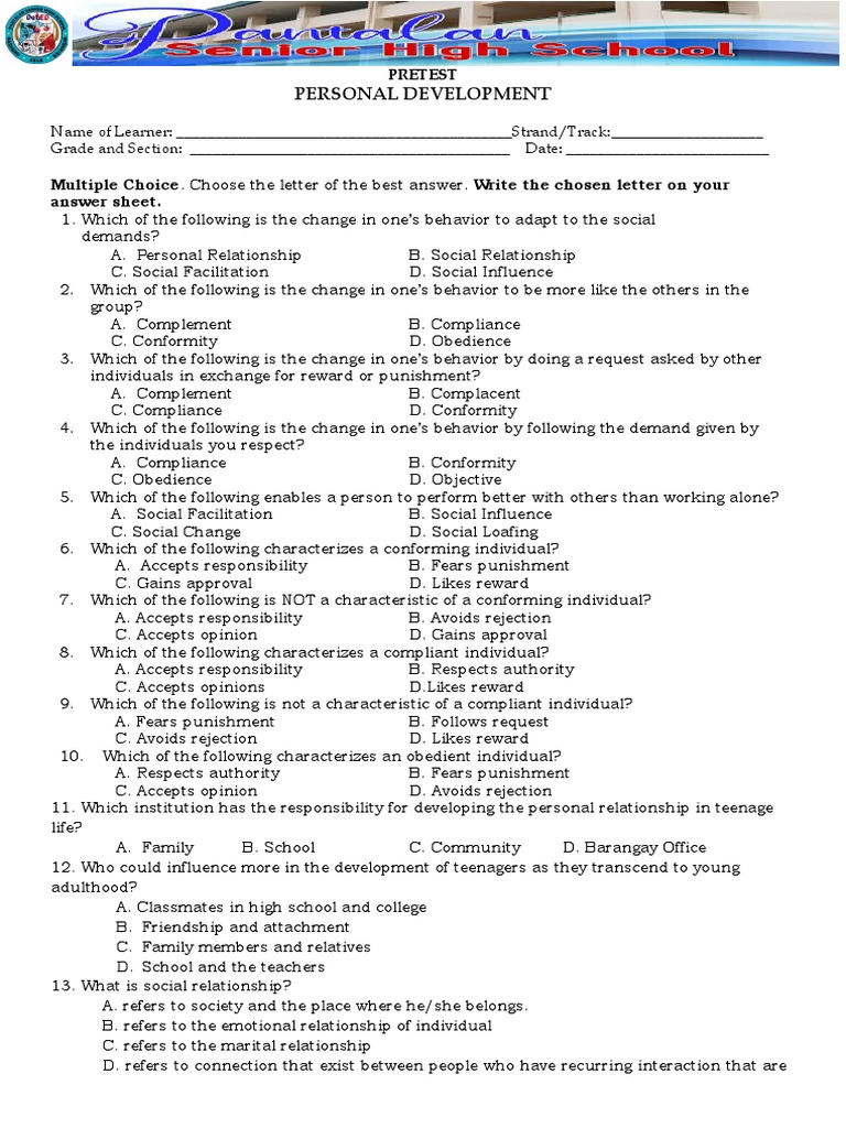 Name of Learner: ___________________________________________Strand/Track: ___________________