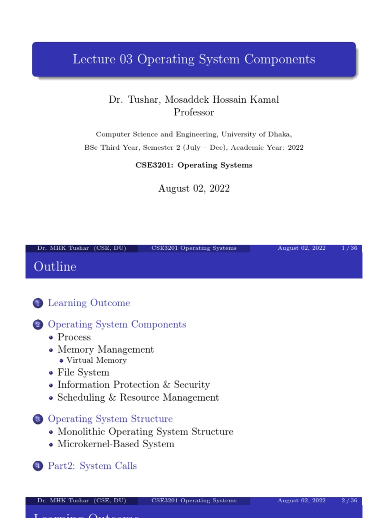 Dr. MHK Tushar (CSE, DU) CSE3201 Operating Systems August 02, 2022 2 / 36