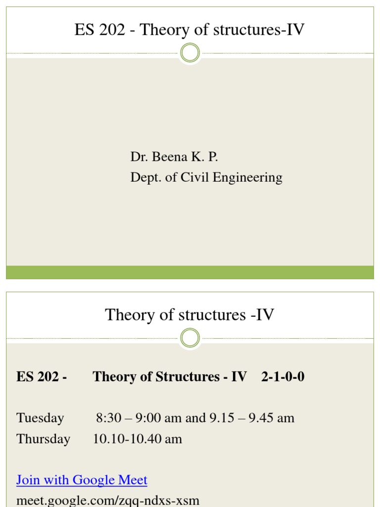 ES 202 - Theory of Structures - IV 2-1-0-0