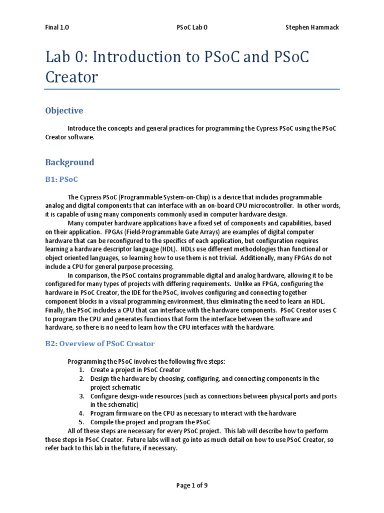 Final 1.0 PSoC Lab 0 Stephen Hammack