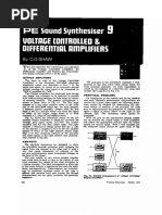 If a low frequenvy oscillator is available, it can be used for modulating either the VCO pitch (frequency modulation = FM, also called "vibrato") or the pulse width (pulse width modulation = PWM). Simple LFOs provide frequencies in the range of 0.1 Hz to 10 Hz while better ones have a significantly wider range (0.01 Hz to 5 kHz) with switchable frequency bands for better adjustment. Modulation frequencies within the audio range should be dealt with in more detail since their result are very special sounds. If a VCO is modulated with a frequency close to its own, a completely new sound characteristic is established. In this case the VCO also produces non-harmonics, i.e. tones whose frequencies are non-integer multiples of the VCO frequency. This acoustical characteristic is the basis for the so-called FM Synthesis which is used with several digital synthesizers. If e.g. a VCO, oscillating at 1 kHz (1000 Hz), is modulated with a frequency of 400 Hz, so-called "side bands" around the the VCO frequency are created which are grouped symmetrically around the VCO frequency as integer multiples of the modulation frequency. For the given example this would result in: 1000 Hz, 1400 Hz, 11800 Hz, 200 Hz, etc.. Strictly speaking this only applies to pure sine wave frequeny modulation, i.e. if both, VCO and LFO, are sine wave oscillators. With other wave forms additional (non-)harmonics will be added. Unharmonic sounds, similar to frequency modulation, are also produced by pulse width modulation with high frequencies. In practice this priciple is used for ##### 12 creating extreme, unharmonic sounds. The degree of being unharmonic depends on the strength (amplitude) of LFO modulation as well as on the frequency ratio of VCO and LFO. "Practice is better than theory" applies here. You should try various settings for LFO frequency and LFO amplitude. Most probably the resulting wave forms are not suited for sweet, "beautiful" sounds but can be used for extreme, "vigorous" sounds instead. Part of the VCO is the glide function ("portamento") which allows continuous gliding from one tone to the next. Normally the glide time can be adjusted with a rotary control from zero (tones will jump) up to several seconds.