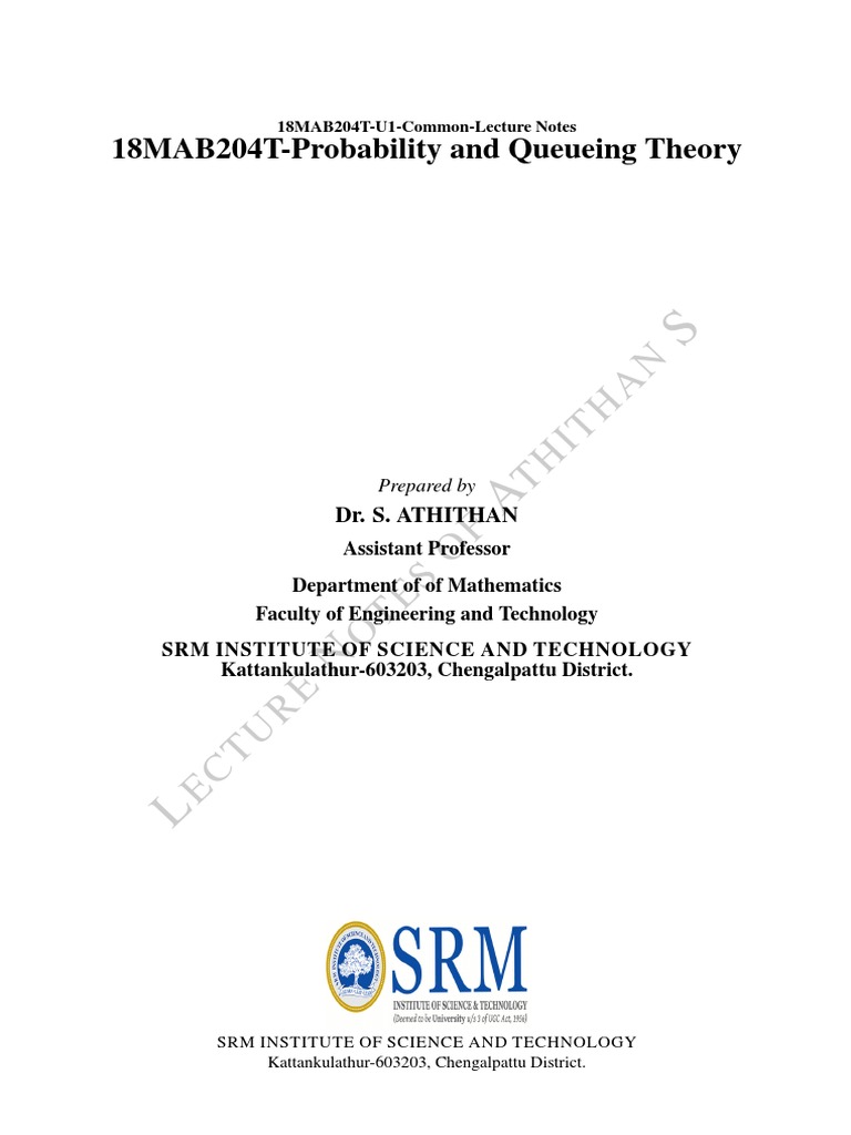 18MAB204T-Probability and Queueing Theory S. ATHITHAN