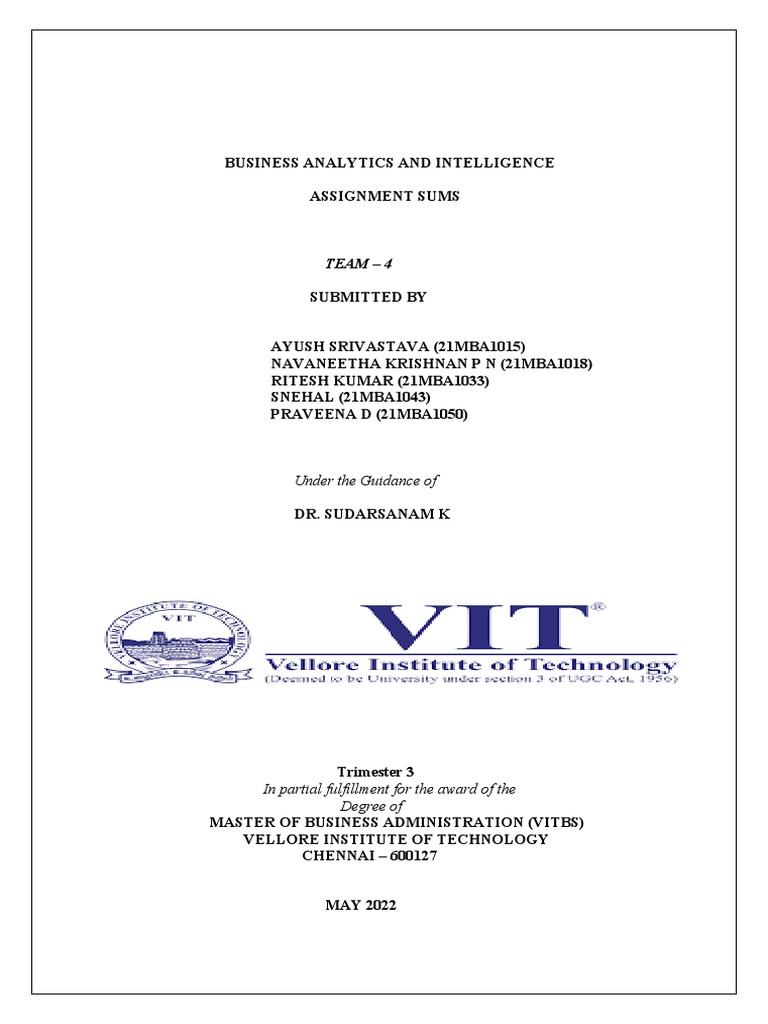 BUSINESS ANALYTICS AND INTELLIGENCE