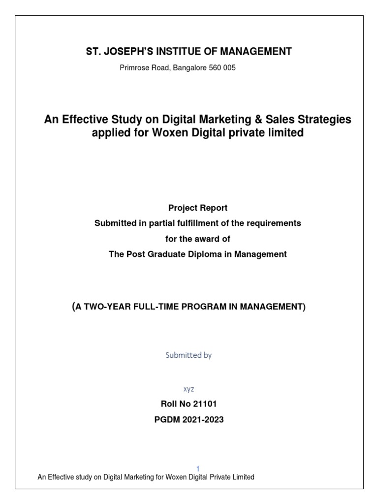 An Effective study on Digital Marketing for Woxen Digital Private Limited