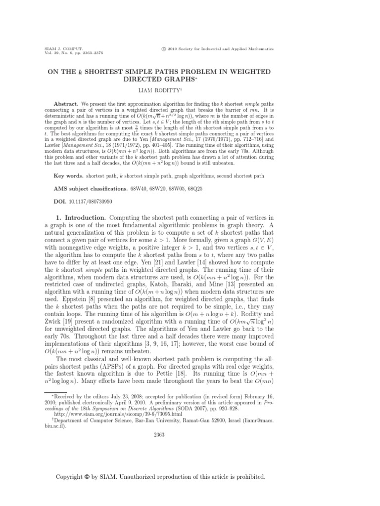 mation algorithm for nding k shortest simple paths in weighted directed graphs. The