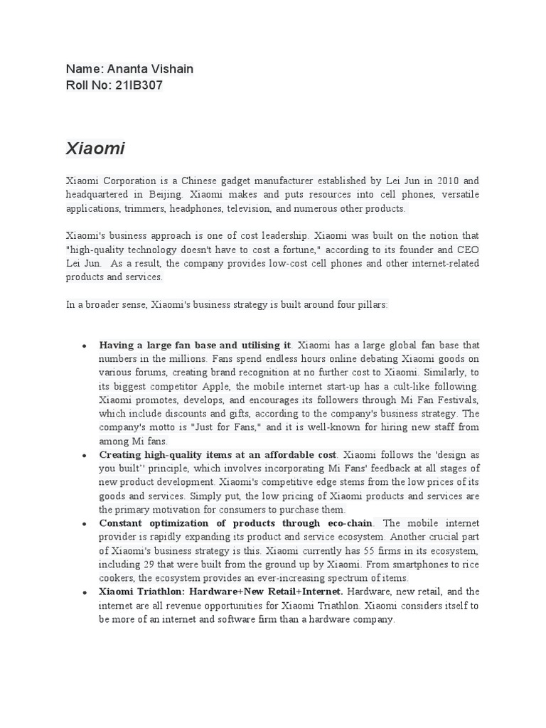 new product development. Xiaomi's competitive edge stems from the low prices of its