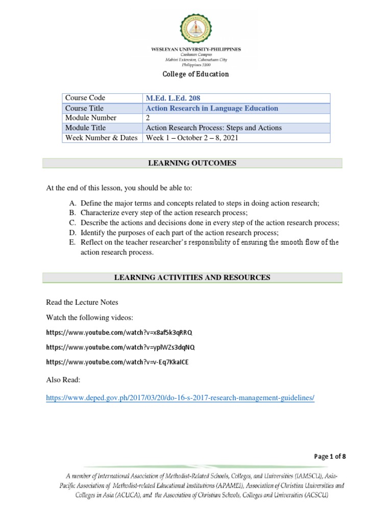 Module Title Action Research Process: Steps and Actions