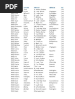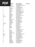 The document contains a list of individuals with their first names, last names, addresses, and cities. It includes six entries: Richard King in Gowan, Mary Haddington in Newton, Cathy Brown in Olingham, Suzanne Boyle in Norville, Jerry Murphy in Mayville, and Sandra Darson in Ginworth. Each entry provides a complete address for the respective individual.