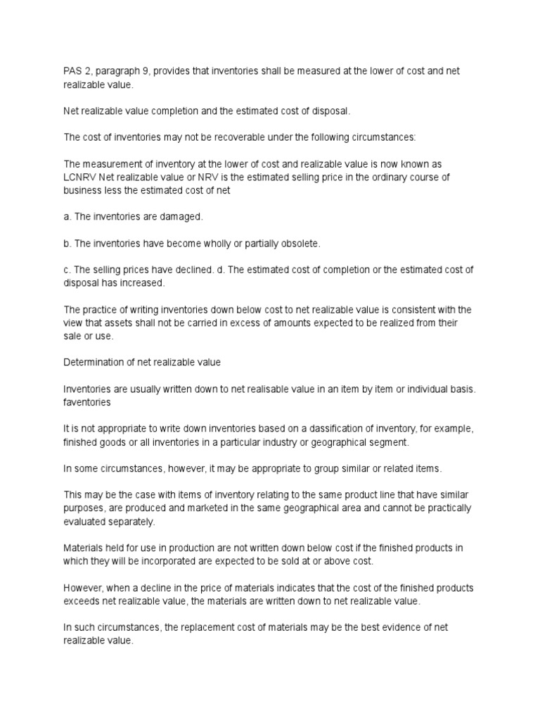 PAS 2, paragraph 9, provides that inventories shall be measured at the lower of cost and net