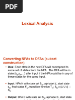 NFA and then to DFA, NFA to DFA, State minimization in DFA, Flex/lex introduction.