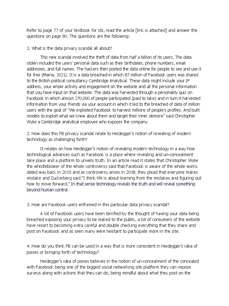2. How does this FB privacy scandal relate to Heidegger's notion of revealing of modern