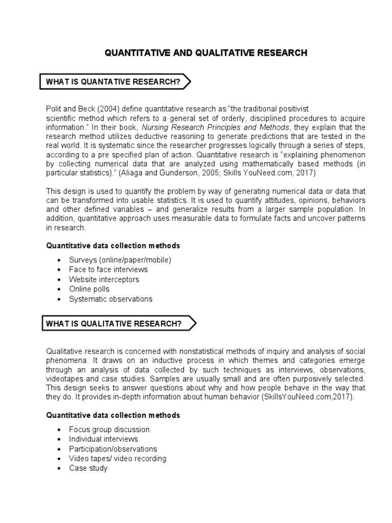 Polit and Beck (2004) define quantitative research as “the traditional positivist