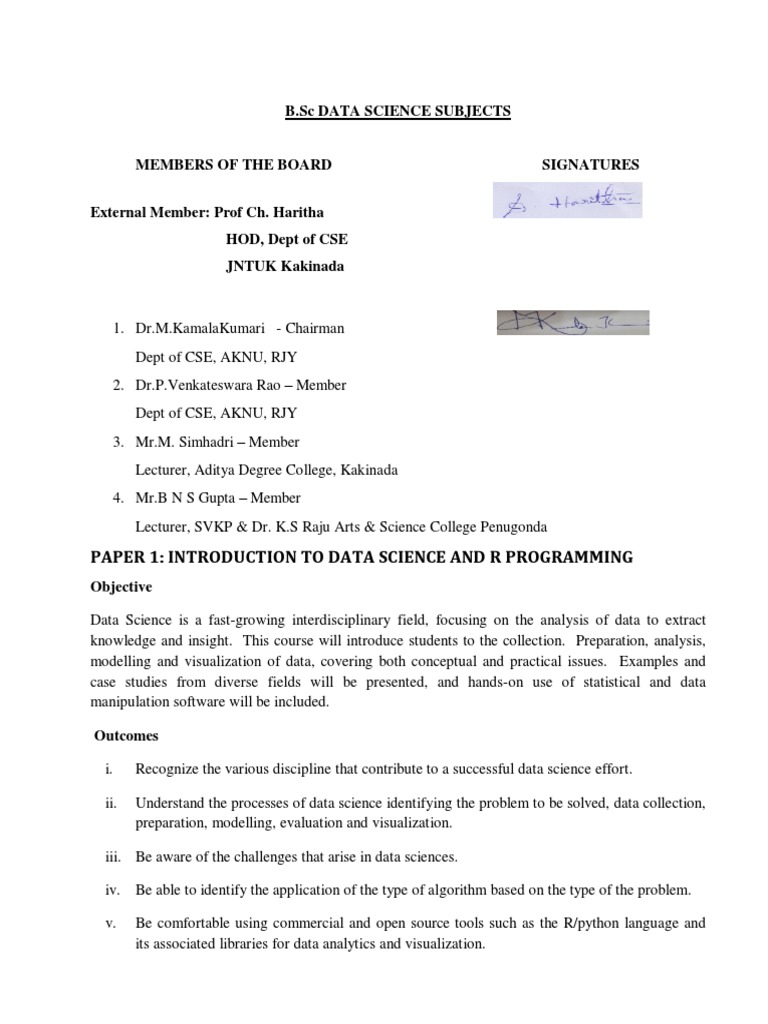 Sc DATA SCIENCE SUBJECTS