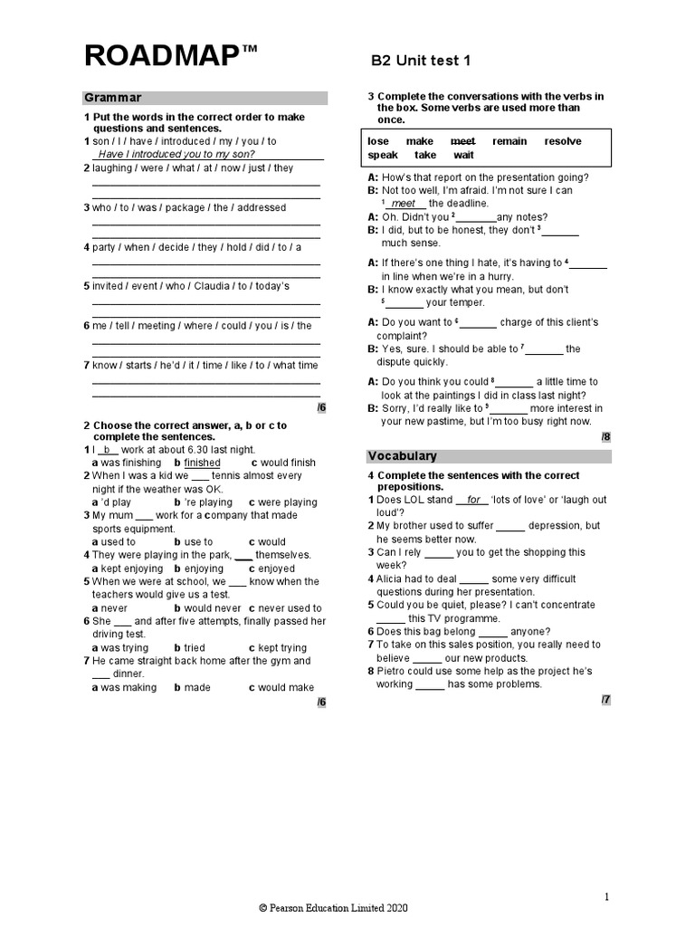 ashamed / inspired. 7 Choose the correct answer, a, b or c to