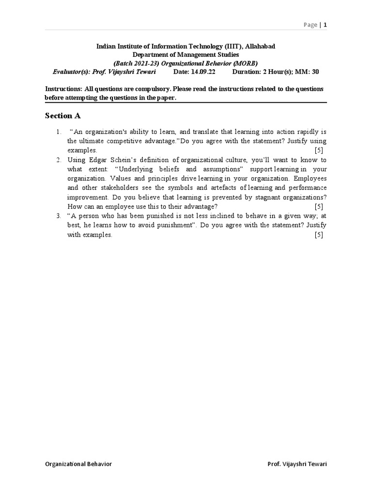 (Batch 2021-23) Organizational Behavior (MORB)