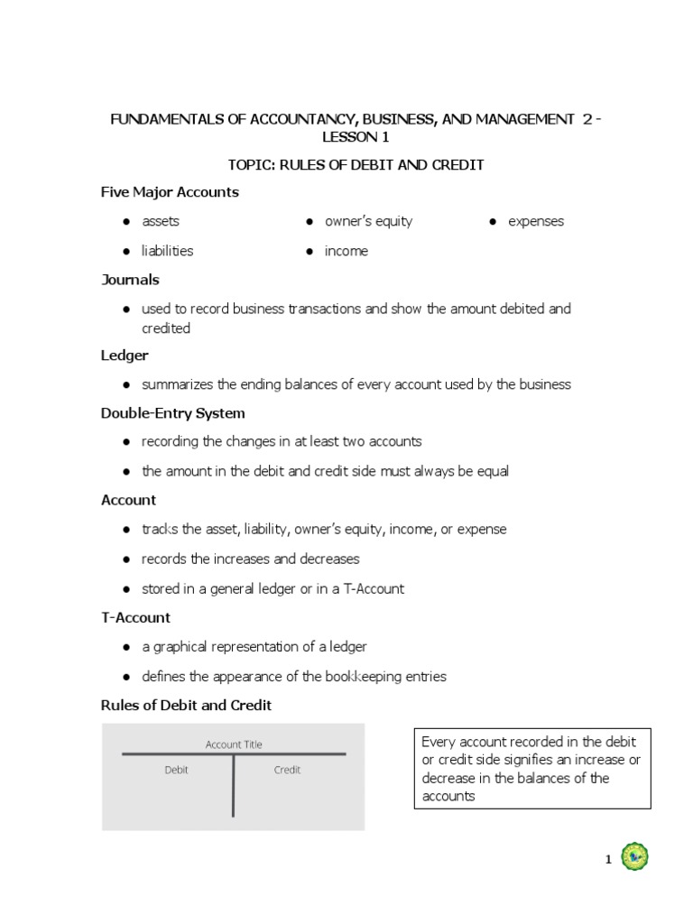 TOPIC: RULES OF DEBIT AND CREDIT