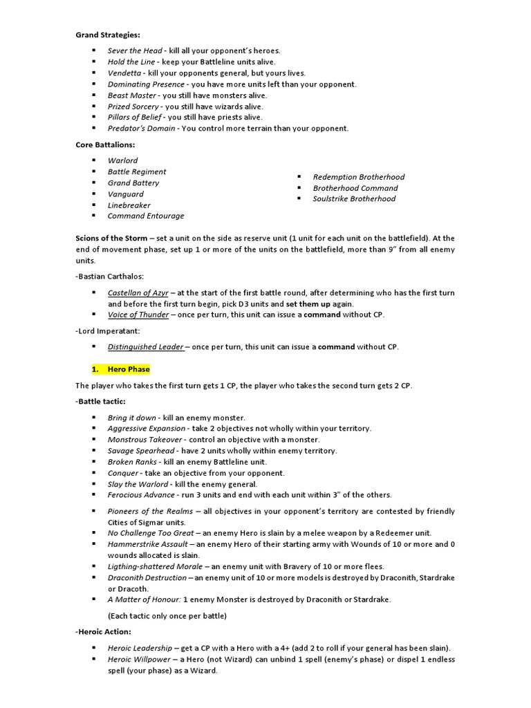 Scions of the Storm – set a unit on the side as reserve unit (1 unit for each unit on the battlefield). At the