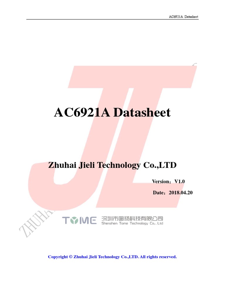 The information contained herein is the exclusive property of JIELI and shall not be distributed, reproduced, or disclosed in whole or in part without