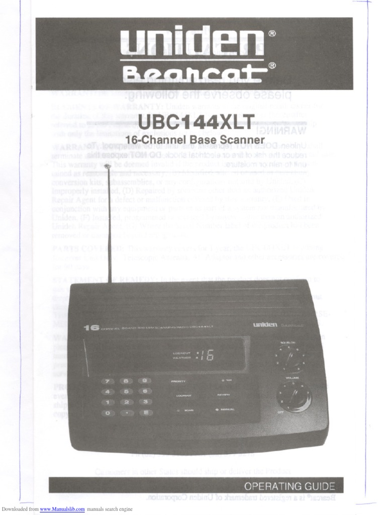 Scanning Scanning is easy and fun with the UBC144XL T 16-Channel