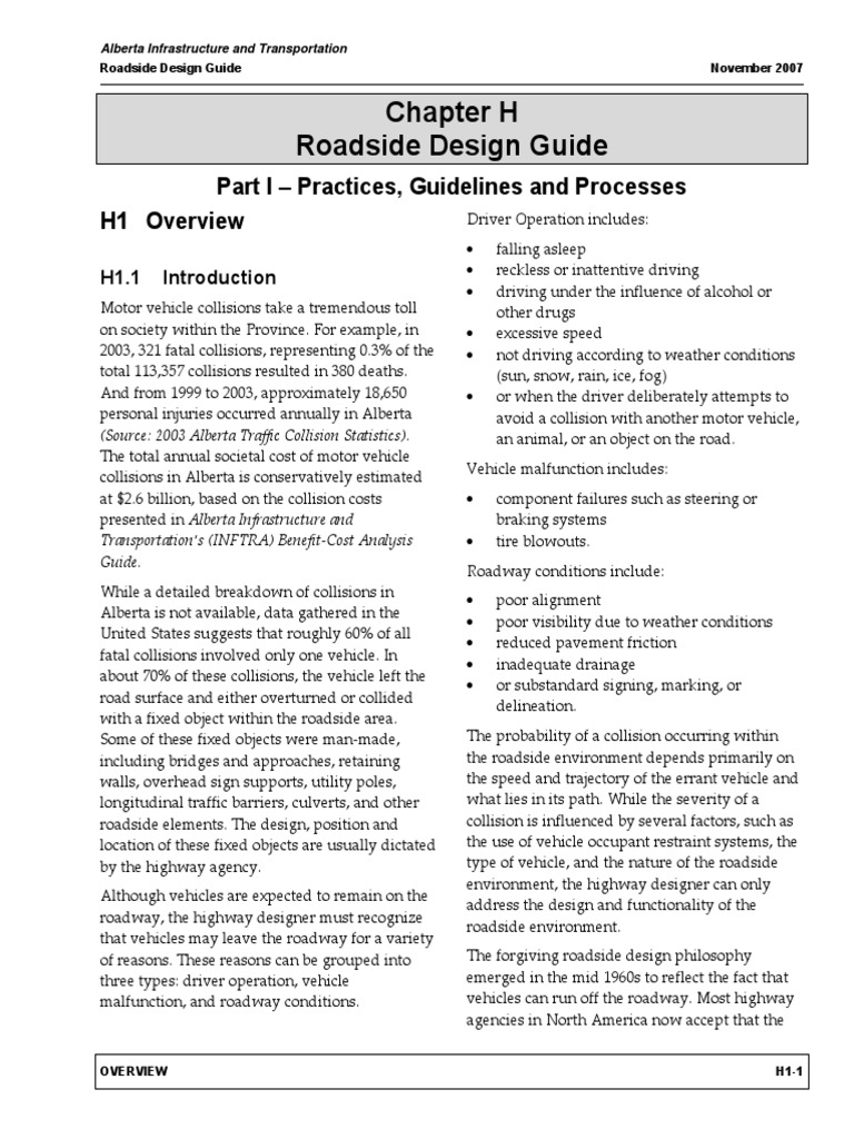 limits of road safety hardware. This knowledge H1.2 Historical Perspective