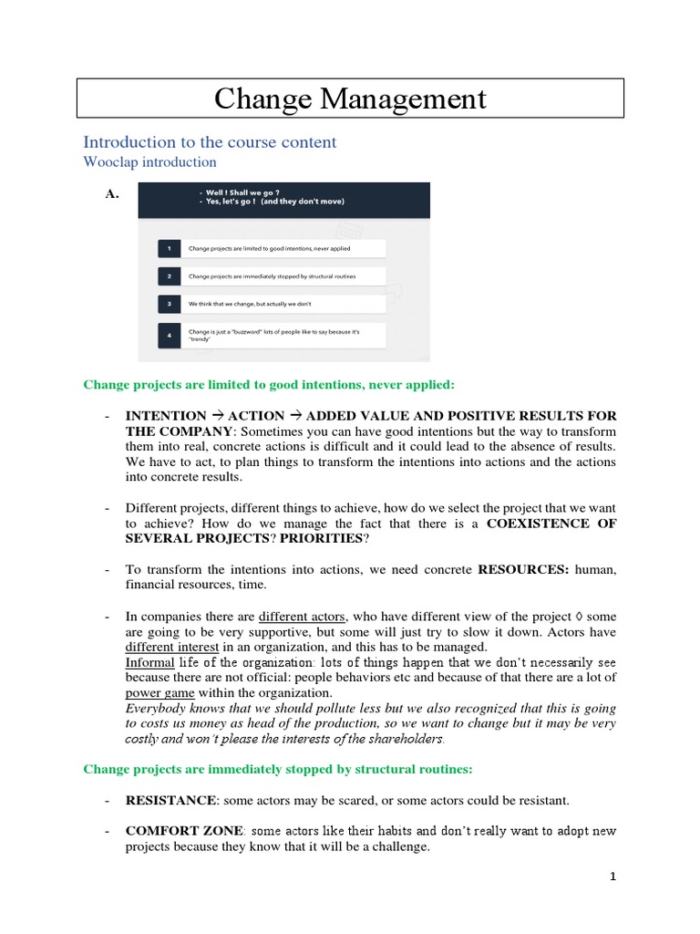 A change manager should be able to anticipate things and to have a plan B if an unpredictable