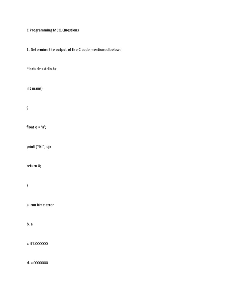 C Programming MCQ Questions