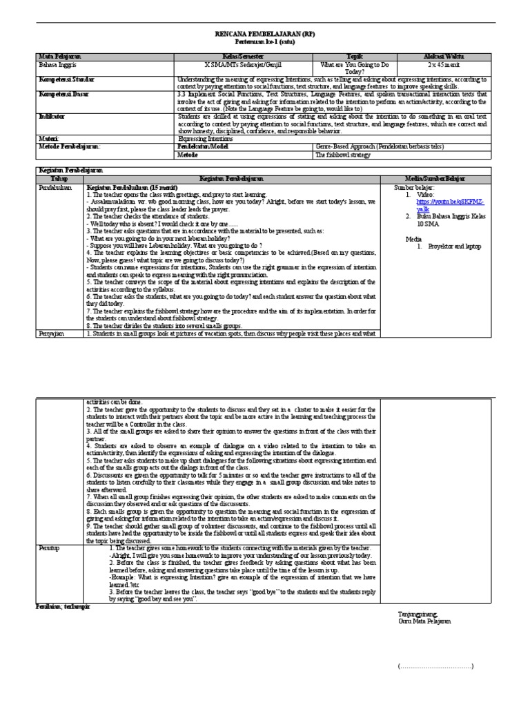 Kompetensi Standar Understanding the meaning of expressing Intentions, such as telling and asking about expressing intentions, according to