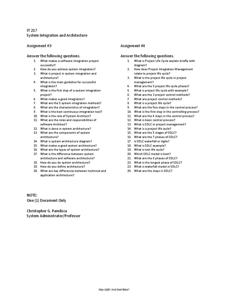 7. What are the 5 system integration methods? 8. What is a project life cycle?