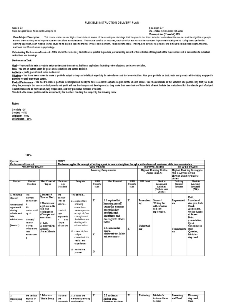 Standard – the career portfolio will be evaluated by the teachers handling the subject by the following rubric.