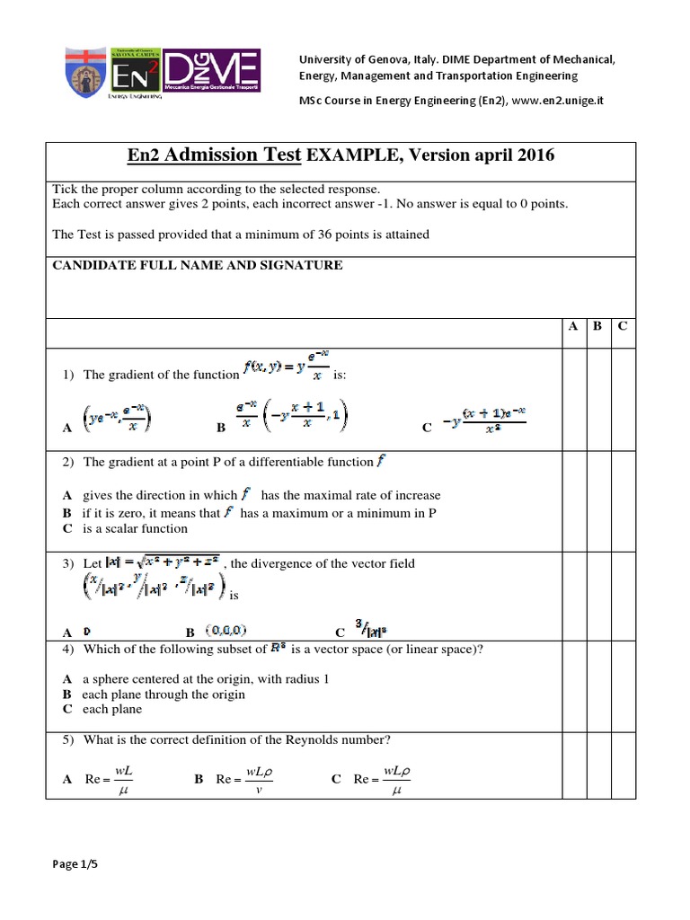MSc Course in Energy Engineering (En2), www.en2.unige.it