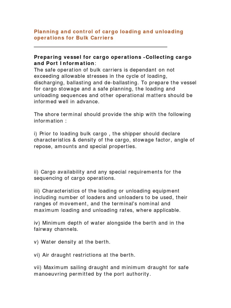 Loading and Unloading of Dry Bulk Carriers and the SOLAS