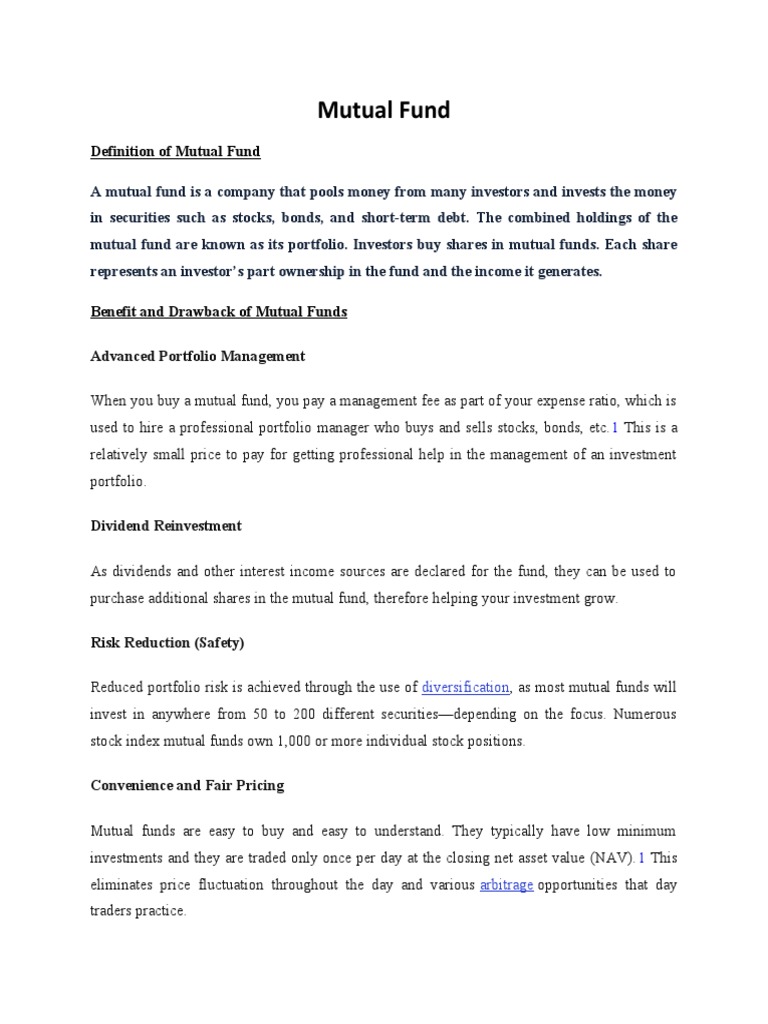 Benefit and Drawback of Mutual Funds