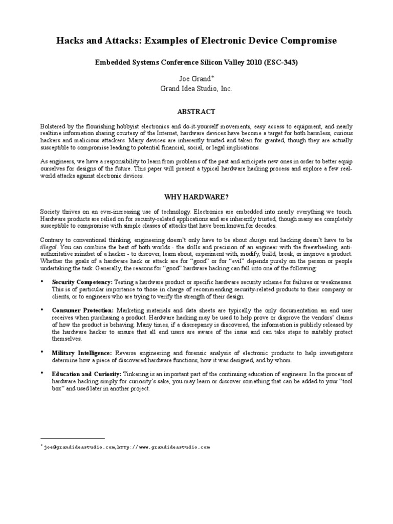 Embedded Systems Conference Silicon Valley 2010 (ESC-343) Joe Grand* Grand Idea Studio, Inc.