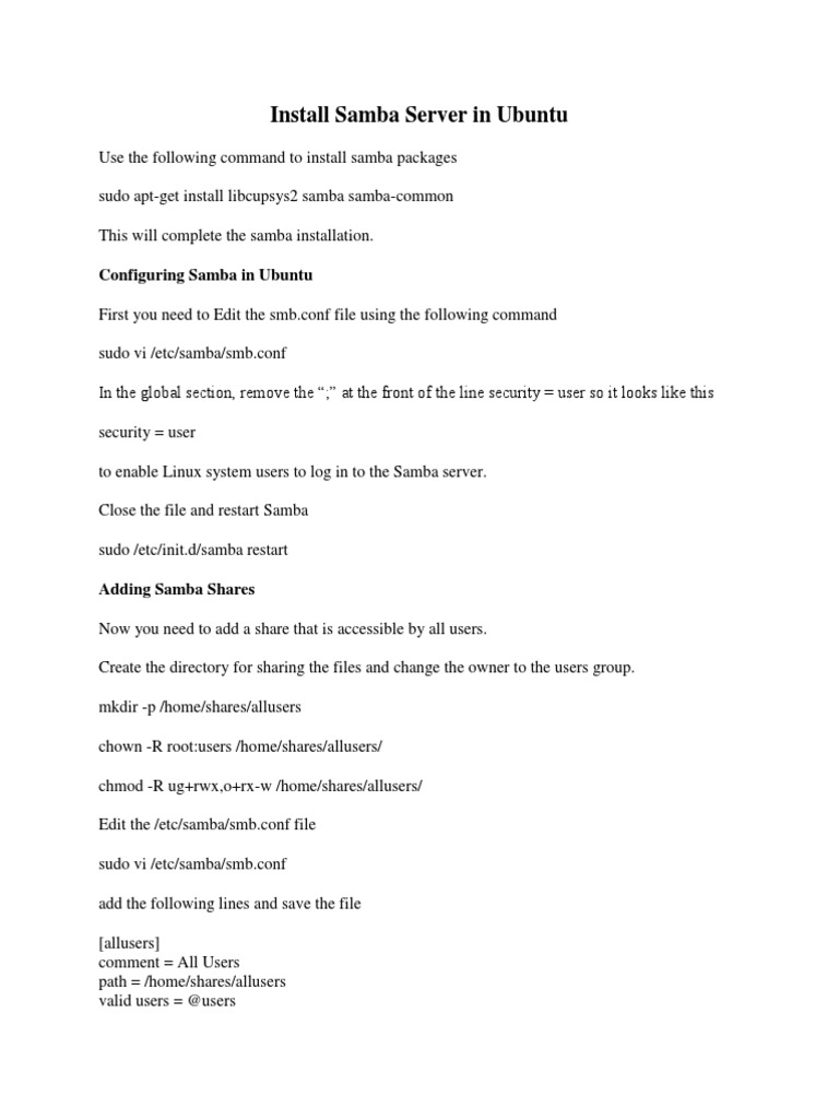 Install Samba Server in Ubuntu